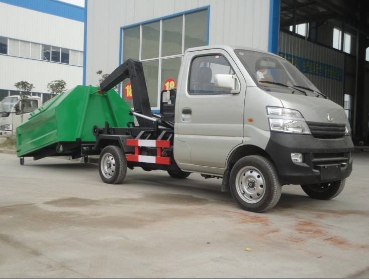 長(zhǎng)安車廂可卸式垃圾車:新款駕駛室,2.5米軸距,長(zhǎng)安JL4600Q4汽油發(fā)動(dòng)機(jī)(國(guó)四)53馬力,5檔變速箱,前盤后鼓剎車,165真空胎。