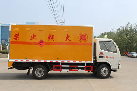 選裝新造型的前面罩。選裝不開門廂體。廂體頂部封閉,不可開啟:側(cè)/后防護(hù)裝置材料材質(zhì)為Q235A碳鋼,側(cè)防護(hù)與副梁,后防護(hù)裝置與車架均采用焊接連接,后防護(hù)斷面尺寸(寬×高)50×120(mm),離地高度為450mm.運(yùn)輸品名:炸藥,雷管,煙花爆竹等,類項(xiàng)號:1.1B,1.1D,1.1G,1.2G,1.3G,1.4G 等;安裝帶衛(wèi)星定位功能的行駛記錄儀;配裝限速裝置,最高時(shí)速80km/h。僅采用有前盤制動(dòng)器和安裝ABS的底盤。僅采用子午線輪胎。ABS系統(tǒng)型號及生產(chǎn)廠:36BG13-30010/東風(fēng)電子科技股份有限公司汽車制動(dòng)系統(tǒng)公司。僅采用排氣管前置的底盤。僅采用4B28ATCI,CY4102-CE4D,D28D11-4DA,SD4M824U,YC4FA115-40,YN38CRD2,ZD30D13-4N發(fā)動(dòng)機(jī),對應(yīng)油耗值分別為13.28,12.93,12.88,13.11,12.89,12.96,12.82。