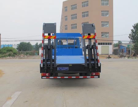 該車僅用于運送不可拆解物體。選裝液壓爬梯。隨底盤選裝新款駕駛室。防護(hù)材料:Q235A碳鋼,連接方式:左右側(cè)面與平板縱梁采用焊接連接, 后部防護(hù)與車架采用焊接連接。該車安裝帶有衛(wèi)星定位功能的行駛記錄儀。該車選用發(fā)動機(jī)型號:EQH200-40,ISDe210 40,YC6J200-42,ISDe180 40,YC6J180-42,EQH180-40,ISDe200 40,ISDe185 40,ISDe245 40,YC6A260-46,ISB210 40對應(yīng)的油耗值分別為(L/100km):28.02,27.93,28.34,30.2,30.58,30.52,28.07,28.48,27.58,27.86,29.37。整車長/前懸/后懸/軸距(mm)對應(yīng)關(guān)系為:9000/1205/2645/5150, 9000/1205/2795/5000, 9000/1250/2600/5150,9000/1250/2750/5000,8400/1205/2495/4700,8400/1250/2450/4700,8000/1205/2295/4500,8000/1250/2250/4500。