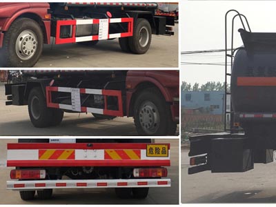該車(chē)適用于運(yùn)輸危險(xiǎn)品。運(yùn)輸介質(zhì)品名:次氯酸鹽溶液,氫氧化鈉,氫氯酸,硫酸密度分別為:1050千克/立方米,1040千克/立方米,1047千克/立方米,1045千克/立方米;類(lèi)項(xiàng)號(hào):8;罐體有效容積:7.7立方米; 罐體外形尺寸(長(zhǎng)×徑)(mm)為:5200×Φ1600。防護(hù)材料:Q235A碳鋼,連接方式:左右側(cè)面及后部防護(hù)均采用焊接連接,后部防護(hù)斷面尺(mm):100×50, 后部防護(hù)離地高度(mm):500。僅采用底盤(pán)子午線輪胎和帶ABS的底盤(pán),該車(chē)前輪安裝盤(pán)式制動(dòng)器,前置排氣管,裝配限速裝置,限速79km/h。安裝帶有衛(wèi)星定位功能的行駛記錄儀。ABS系統(tǒng)型號(hào)/生產(chǎn)企業(yè)對(duì)應(yīng)關(guān)系:ABS/ASR-24V-4S/4M/東風(fēng)電子科技股份有限公司。油耗對(duì)應(yīng)關(guān)系(L/100km):26.4(ISD210 50),26.0(ISD190 50)。車(chē)輛顏色和文字噴涂位置可變化。僅選用底盤(pán)4700mm的軸距。