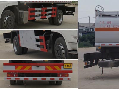 該車適用于危險品運(yùn)輸, 運(yùn)輸介質(zhì):柴油, 汽油, 煤油介質(zhì)密度分別為:0.83噸/立方米, 0.75噸/立方米, 0.80噸/立方米; 類項號:3, 罐體有效容積:10.2立方米, 罐體外形尺寸(長/長軸/短軸)(mm):5700/1900/1400。整車長/軸距/前懸/后懸(mm)對應(yīng)關(guān)系分別為:8490/4700/1430/2360; 8490/4500/1430/2560。防護(hù)材料:Q235A碳鋼, 連接方式:左右側(cè)面及后部防護(hù)均采用焊接連接, 后部防護(hù)斷面尺寸(mm):100×50, 后部防護(hù)離地高度(mm):500。僅采用底盤子午線輪胎和帶ABS的底盤; 該車前輪安裝盤式制動器, 前置排氣管, 裝配限速裝置, 限速80km/h。安裝帶有衛(wèi)星定位功能的行駛記錄儀。ABS型號/廠家:3631010-C2000/東科克諾爾商用車制動系統(tǒng)(十堰)有限公司。油耗對應(yīng)關(guān)系(L/100km):27.3(YC6J180-52), 27.0(YC6J220-52)。 隨底盤選裝前保險杠。車輛顏色可選, 文字噴涂位置可變化。