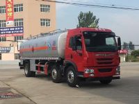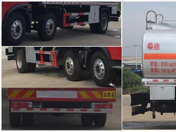 該車適用于危險品運輸, 運輸介質(zhì)為柴油, 煤油時密度分別為830, 800千克/立方米; 類項號:3; 罐體有效容積:18.3立方米。罐體外形尺寸(長×長軸×短軸)(mm):6950×2300×1500。運輸介質(zhì)為汽油時密度為700千克/立方米; 類項號:3; 罐體有效容積:21.7立方米。罐體外形尺寸(長×長軸×短軸)(mm):6950×2440×1640。整車長/軸距/前懸/后懸(mm)對應(yīng)關(guān)系為:9730/1900+4700/1332/1798, 9730/1900+4000/1332/2498。該車可裝配:恒和嘉華牌 , 伯萊牌, 正星牌, 恒山牌, 華特牌數(shù)控加油機, 其型號對應(yīng)為: SKES-1112, SKDS-2001A, SC20D1110F, HS1812B, HT-YV60E, 對應(yīng)生產(chǎn)廠家為:恒和嘉華科技有限公司 , 上海伯萊機械有限公司, 正星科技有限公司, 托肯恒山科技(廣州)有限公司, 隨州市華特專用設(shè)備有限公司。隨底盤選裝駕駛室。防護材料:Q235A碳鋼, 連接方式:左右側(cè)面及后下部防護均采用焊接連接, 后部防護斷面尺寸(mm):110×50, 后部防護離地高度(mm):530。僅采用底盤子午線輪胎和帶ABS的底盤; 該車前輪安裝盤式制動器, 前置排氣管, 裝配限速裝置, 限速80km/h。安裝帶有衛(wèi)星定位功能的行駛記錄儀。ABS生產(chǎn)廠家/型號:上海萬捷汽車控制系統(tǒng)有限公司/VIE ABS-II。車輛顏色可選, 文字噴涂位置可變化。