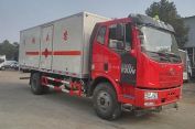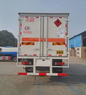 該車適用于運輸危險品。選裝右側(cè)箱體不開門, 選裝側(cè)門型式及位置, 選裝后部液壓尾板, 后部液壓尾板收起狀態(tài)長度是250mm, 廂體顏色可變化, 文字噴涂位置可變化。廂體頂部封閉, 不可開啟。安裝限速裝置, 限速79km/h。該車安裝帶有衛(wèi)星定位功能的行駛記錄儀。僅采用前盤制動器和安裝ABS以及前置消聲器的底盤。僅采用子午線輪胎。ABS系統(tǒng)生產(chǎn)廠家:長春科密汽車制動有限公司, 型號:CM4XL.該車運輸具有獨立容器包裝的易燃氣體:液化石油氣、壓縮天然氣、乙炔、乙烷、丙烷、丁烷、異丁烷、丁烯、甲烷、丙烯、環(huán)丁烷、丙二烯、甲乙醚、打火機或打火機加油器(裝有易燃氣體)、氫。運送危險品類項號為2.1; 運輸具有獨立容器包裝的非易燃無毒氣體:液化氣體(非易燃、充有氮、空氣)、氧(氮、空氣、氦、氬、氖)、二氧化碳、二甲基丙烷; 運送危險品類項號為2.2。側(cè)防護和后防護裝置材料材質(zhì)為Q235A碳鋼, 側(cè)防護與箱體底部焊接連接, 后防護裝置與車架采用焊接連接。后防護截面尺寸(mm):145×50, 離地高度為530mm。發(fā)動機CA4DK1-18E51, CA4DK1-22E51分別對應(yīng)的油耗值為:27.42、27.42。當(dāng)整車長度為8680mm時, 軸距4700mm、5000mm、5300mm與后懸2580mm、2280mm、1980mm一一對應(yīng)。