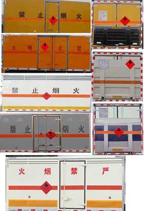 該車適用于運(yùn)輸危險(xiǎn)品。廂體頂部封閉, 不可開啟。該車用于運(yùn)輸具有獨(dú)立容器包裝的易燃?xì)怏w:液化石油氣, 原油氣, 壓縮天然氣, 乙炔, 甲烷, 乙烷, 丙烷, 丁烷, 丙烯, 丁烯, 二甲醚, 硫化氫, 打火機(jī)或打火機(jī)加油器(裝有易燃?xì)怏w), 壓縮氫, 類項(xiàng)號(hào):2.1; 運(yùn)輸具有獨(dú)立容器包裝的非易燃無(wú)毒氣體:液化氣體(非易燃, 充有氮, 二氧化碳或空氣), 壓縮氧(氮, 空氣, 氦, 氬, 氖), 二氧化碳, 類項(xiàng)號(hào)2.2。防護(hù)材料:Q235A碳鋼, 連接方式:左右側(cè)面及后下部防護(hù)均采用焊接連接, 后部防護(hù)斷面尺寸(mm):100×50, 后部防護(hù)離地高度(mm):420。僅采用底盤子午線輪胎和帶ABS的底盤, 該車前輪安裝盤式制動(dòng)器, 前置排氣管, 裝配限速裝置, 限速80km/h。安裝帶有衛(wèi)星定位功能的行駛記錄儀。ABS系統(tǒng)型號(hào):APG3550500A, ABS系統(tǒng)生產(chǎn)廠家:浙江亞太機(jī)電股份有限公司。油耗對(duì)應(yīng)關(guān)系(L/100km):13.0(JX493ZLQ5)。隨底盤選裝駕駛室??蛇x裝側(cè)門型式及位置, 選裝后部液壓尾板; 廂體顏色可變化, 文字噴涂位置可變化??蛇x裝不開側(cè)門時(shí), 整車寬為1950mm。后部液壓尾板收起狀態(tài)長(zhǎng)度是250mm。危險(xiǎn)貨物運(yùn)輸車輛的類型(FL型車輛)。