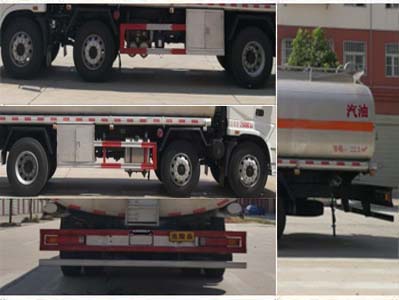 該車適用于危險(xiǎn)品運(yùn)輸。類項(xiàng)號(hào):3; 罐體有效容積:22.5立方米, 罐體外形尺寸(長(zhǎng)×長(zhǎng)軸×短軸)(mm)為:7000×2450×1650。防護(hù)材料:Q235A碳鋼, 連接方式:左右側(cè)面及后下部防護(hù)均采用焊接連接, 后部防護(hù)斷面尺寸(mm):120×50, 后部防護(hù)離地高度(mm):500。選裝輕量化設(shè)計(jì)時(shí)整備質(zhì)量為8280kg。僅采用底盤子午線輪胎和帶ABS的底盤; 該車前輪安裝盤式制動(dòng)器, 前置排氣管, 裝配限速裝置, 限速80km/h。安裝帶有衛(wèi)星定位功能的行駛記錄儀。ABS系統(tǒng)生產(chǎn)廠家:東風(fēng)電子科技股份有限公司, 東風(fēng)電子科技股份有限公司汽車制動(dòng)系統(tǒng)公司, 型號(hào):3550X-1010, DETC-ABS-4S/4M。整車長(zhǎng)/前懸/軸距/后懸(mm)對(duì)應(yīng)關(guān)系為:9750/1460/1850+4150/2290。發(fā)動(dòng)機(jī)油耗對(duì)應(yīng)關(guān)系(L/100km):37.2(YC6J220-50)。危險(xiǎn)貨物運(yùn)輸車輛的類型(FL型車輛)。