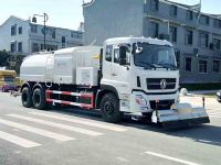 此車(chē)為路面清洗專(zhuān)用車(chē), 專(zhuān)用裝置為高壓水泵, 噴槍.此車(chē)前伸為(mm):980.介質(zhì):水, 密度:1000千克/立方米.罐體有效容積:12.6立方米, 罐體尺寸(mm): 5080×2350×1550, 外形長(zhǎng)/軸距/后懸對(duì)應(yīng)關(guān)系為(mm):10500/4350+1350/2340, 11500/5350+1350/2340, 11850/5700+1350/2340, 9950/3800+1350/2340. 防護(hù)材料:Q235A碳鋼, 連接方式:左右側(cè)面及后下部防護(hù)均采用焊接連接, 后下部防護(hù)斷面尺寸(mm):120×50, 后下部防護(hù)離地高度(mm):480, ABS生產(chǎn)廠家:東科克諾爾商用車(chē)制動(dòng)系統(tǒng)(十堰)有限公司; 型號(hào):3631010-C2000.