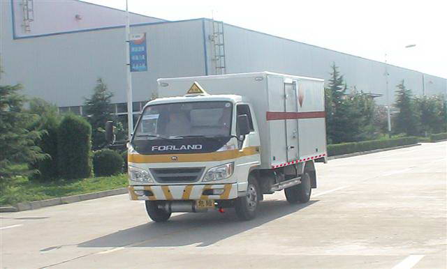 貨廂頂部不封閉,選裝導(dǎo)流罩,排氣管前置并裝有防火花裝置,運(yùn)送危險(xiǎn)品類項(xiàng)號(hào):2.1;隨底盤選裝前圍及車門覆蓋件.選裝兩側(cè)帶側(cè)開門貨廂. |