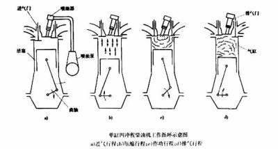 由于使用燃料的性質(zhì)不同,四沖程柴油機(jī)的可燃混合氣的形成和著火方式與汽油機(jī)有很大區(qū)別。下面主要敘述柴油機(jī)與汽油機(jī)工作循環(huán)的不同之處。