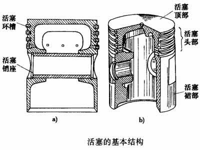 活塞的基本結(jié)構(gòu)可分為頂部、頭部和裙部三個(gè)部分。