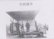 湖北程力專用汽車有限公司生產(chǎn)的流動(dòng)舞臺(tái)車是一種方便流動(dòng)演出的、并可展開(kāi)成為舞臺(tái)的特種汽車,它主要包括底盤部分和上裝部分兩答部分,上裝部分由頂板側(cè)板底板組成,而側(cè)板和頂板分別由四個(gè)液壓油缸控制展開(kāi)即成舞臺(tái)的臺(tái)頂,底板展開(kāi)四個(gè)液壓油缸控制成舞臺(tái),省去傳統(tǒng)搭臺(tái)程序,省時(shí)省力操作簡(jiǎn)便安全可靠,功能齊全,外觀美觀。該車已獲國(guó)家專利。歡迎廣大客戶親臨參觀并咨詢。電話:13607289999