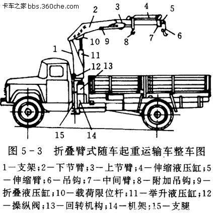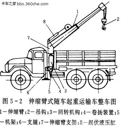 隨車吊是一種通過液壓舉升及伸縮系統(tǒng)來實現(xiàn)貨物的升降、回轉(zhuǎn)、吊運(yùn)的設(shè)備,通常裝配于載貨汽車上。通過對隨車吊控制系統(tǒng)的操縱,驅(qū)動動力裝置(電動機(jī)或內(nèi)燃機(jī)、將動力能量輸人,借助金屬結(jié)構(gòu)和工作機(jī)構(gòu)(起升機(jī)構(gòu)、運(yùn)行機(jī)構(gòu)、變幅機(jī)構(gòu)、旋轉(zhuǎn)機(jī)構(gòu)或行走機(jī)構(gòu)、單獨(dú)或組合運(yùn)動,帶動取物裝置通過吊、抓、吸、夾、托或其他方式,在較大空間范圍內(nèi)完成對物料(或設(shè)備、的搬運(yùn)或吊裝任務(wù)。隨車吊的金屬結(jié)構(gòu)將各工作機(jī)構(gòu)、傳動裝置、電氣設(shè)備等通過不同的配合、組合、連接,安裝調(diào)試,組成一個整體,并承載起重機(jī)的自重和吊重。