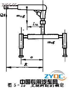 由于隨車起重運(yùn)輸車只有左右兩個(gè)支腿,故只需確定橫向跨距。確定的原則是:起重裝置在臂架強(qiáng)度允許的起重量范圍內(nèi)工作時(shí),要保證整車的穩(wěn)定,即整車的側(cè)向穩(wěn)定性。