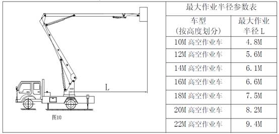 5、高空作業(yè)車最大作業(yè)半徑即大臂升到最大角度,二臂和小臂水平時工作斗到回轉支承中心的距離為L,如圖10: