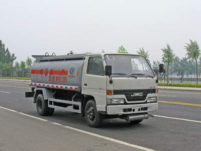 5.江鈴輕卡油罐車CLW5062GJY3 加油車:底盤采用江鈴JX1060TG23型,油剎,五十鈴JX493ZLQ3 - 115馬力國Ⅲ發(fā)動機,7.00R16LT真空輪胎,帶原裝空調。江鈴油罐車罐體容積4立方-6立方米,罐體采用