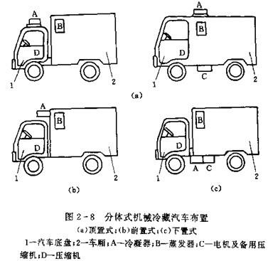 分體式制冷機組比整體式的帽冷量要小,故主要用于輕型或微型冷藏汽車。