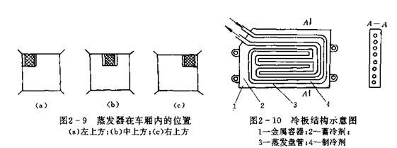 蒸發(fā)器一般布置在隔熱車廂內(nèi)前壁中上方,但也有根據(jù)需要布置左(右)上方的,如圖2-9所示。