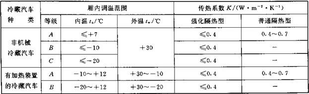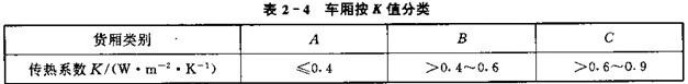 表2-3冷藏汽車廂內(nèi)調(diào)溫范圍與總傳熱系數(shù)K