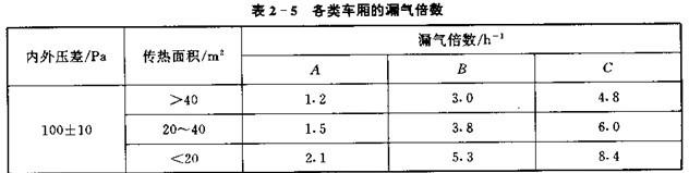 按漏氣倍數(shù)的不同,車廂也可分為A、B、C三類,并規(guī)定冷藏汽車不得采用C類車廂,各類車廂的漏氣倍數(shù)見表2-5。