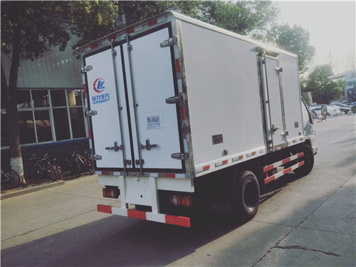 江鈴順達(dá)冷藏車整車型號(hào):CLW5041XLCJ5型冷藏車,底盤型號(hào):JX1041TG25,準(zhǔn)乘人數(shù): 2人,五十鈴柴油發(fā)動(dòng)機(jī),功率85kw,115馬力,駕駛室翻轉(zhuǎn),ABS,油剎,7.00R16鋼絲胎,選裝方向助力,5檔變速箱,軸距3360(mm),總質(zhì)量:4495kg,整備質(zhì)量:2870kg,額定載質(zhì)量1495kg,整車尺寸:5995×1950×2900(mm),箱體內(nèi)尺寸:4150×1750×1750(mm),藍(lán)牌,廂體內(nèi)外玻璃鋼,8cm高密度聚氨酯保溫,底板為防滑花紋鋁板,后門鎖件為不銹鋼。