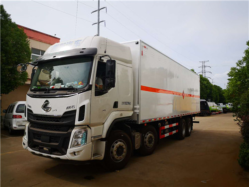 國五東風(fēng)柳汽前四后八易燃液體廂式運(yùn)輸車整車型號HCQ5320XRYLZ5型易燃液體廂式運(yùn)輸車,底盤型號LZ1320H7EBT,總質(zhì)量:32000kg,額定載質(zhì)量:20050kg,整備質(zhì)量:11820kg,底盤采用東風(fēng)柳汽H5駕駛室,國六玉柴YC6A290-50,9JS119TA,Ф430離合,2*5.5T前橋,F(xiàn)S160后橋,282(8)車架,600L鋁合金油箱,12R22.5,前機(jī)械后氣囊駕駛室懸置、電動液壓翻轉(zhuǎn)、氣囊減震司機(jī)座椅、自動空調(diào)、定速巡航系統(tǒng)、ABS、車載終端、第三軸為10t提升橋、中控鎖。國五東風(fēng)柳汽前四后八易燃液體廂式運(yùn)輸車圖片展示: