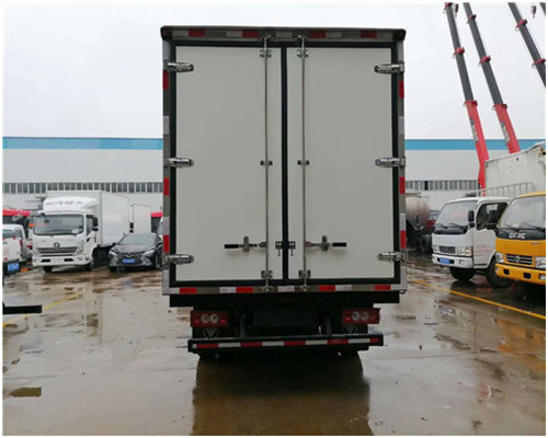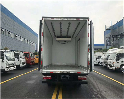 國六福田歐馬可S1、奧鈴速運單排及排半冷藏車廂體工藝: 廂體材質(zhì)采用內(nèi)外玻璃鋼,中間8CM聚氨酯保溫板,后雙開門,廂體右側(cè)靠前選裝開側(cè)門,底部鋁花紋板,前部排水孔,門邊條采用迷宮式橡膠密封條,鋁合金型材包邊,不銹鋼包角,不銹鋼門鎖,不銹鋼門框及合頁,廂體內(nèi)節(jié)能LED照明燈。