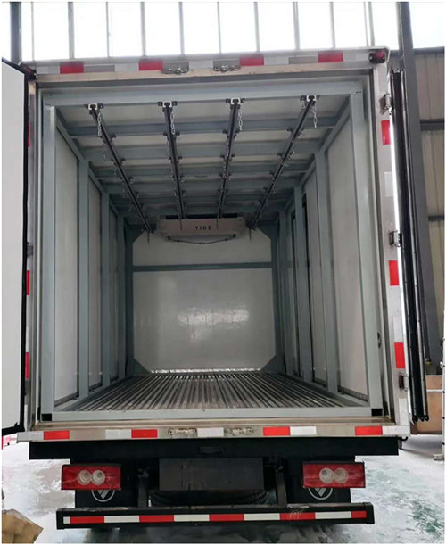 國六福田歐馬可S1、奧鈴速運單排及排半冷藏車其他選裝配置:活動框架式肉鉤,對接式滑軌,直排式滑軌,通風槽,隔溫板,內(nèi)不銹鋼,液壓尾板。