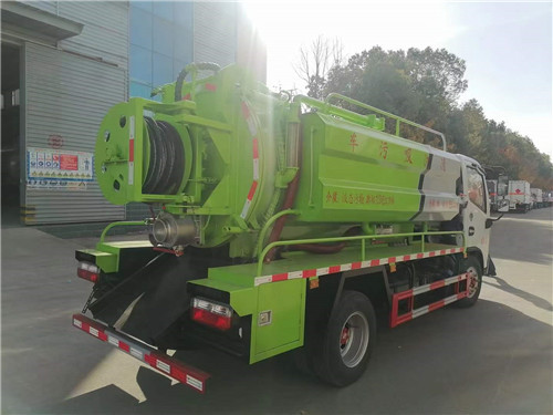 2、制作罐體容積約2+4方,碳鋼材質(zhì)≤6mm;高壓部分采用天津通潔170L/min流量24MPa高壓泵,氣推水 ,10個組合噴頭,直徑19高壓管60米;吸污部分采用山東SK-9水循環(huán)泵,罐體后蓋尾部一個100進污口和 一個150排污口,壓力表,視糞管,防溢閥。外觀嚴(yán)格按公告做。