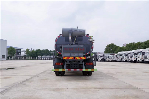 國六東風(fēng)T5后雙橋20方綠化噴灑車,可加裝霧炮。 國六東風(fēng)T5后雙橋20方綠化噴灑車底盤配置:EQ1250GL6DJ,玉柴245,軸距4350+1350,陜齒八檔變速箱,前5T,后雙10T,11.00鋼絲胎,空調(diào),氣囊座椅,中控鎖,多功能方向盤,記錄儀,MP5大顯示屏。 國六東風(fēng)T5后雙橋20方綠化噴灑車罐體容積20立方,罐體采用標(biāo)準(zhǔn)Q235碳鋼制作,板材厚度5mm,配大功率專用灑水車,可自吸自排,前沖后灑,側(cè)噴,高位花灑,主管道加粗,直通球閥式消防接口,帶后工作平臺(tái),沖孔平臺(tái),帶高