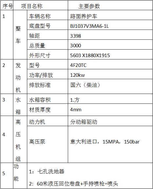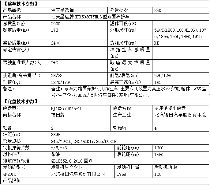 【國六福田勝途5】路面養(yǎng)護(hù)車底盤配置: