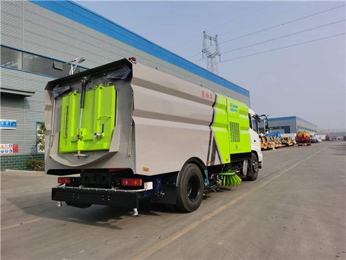 ? 洗掃車采用東風(fēng)天錦DFH1180EX8型國六二類汽車底盤改裝,加裝副發(fā)動機、風(fēng)機、高壓水泵、清水箱、垃圾箱、左右立掃、帶噴水桿的寬吸嘴、低壓沖洗系統(tǒng)、掃盤降塵系統(tǒng)、液壓系統(tǒng)、專用裝置電控系統(tǒng)和副車架等改裝而成。