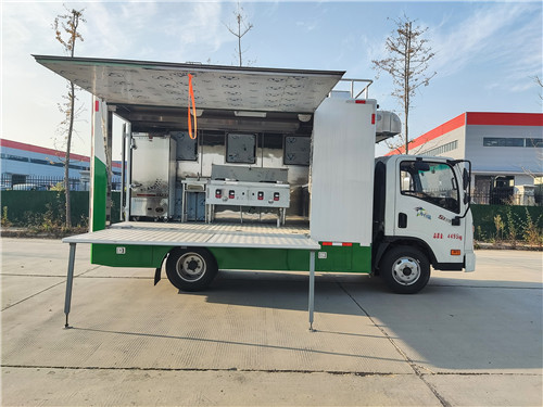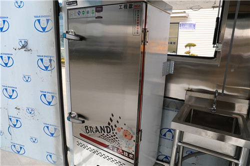 大運(yùn)奧普力國(guó)六云內(nèi)126馬力國(guó)六移動(dòng)餐車(chē)上裝配置:箱體外冷板,內(nèi)不銹鋼板,5cm復(fù)合保溫板,底板防滑花紋鋁板,廂體帶不銹鋼凈水箱、洗手池、污水箱、燃料箱、不銹鋼爬梯護(hù)欄,加裝雙眼灶、平冷柜、蒸飯車(chē)、不銹鋼菜架等。