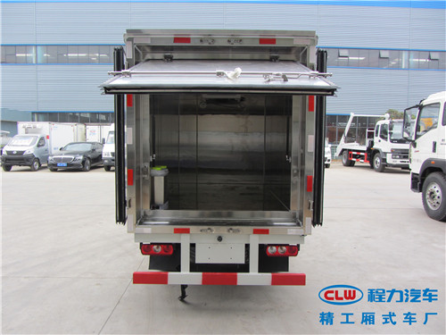 改裝要求:廂體采用內(nèi)不銹鋼外玻璃鋼制作,中間8公分厚保溫板,紫外線消毒燈、噴霧消毒,雙后門,廂體密封無泄漏,裝配零下五度制冷機組,其余標配。